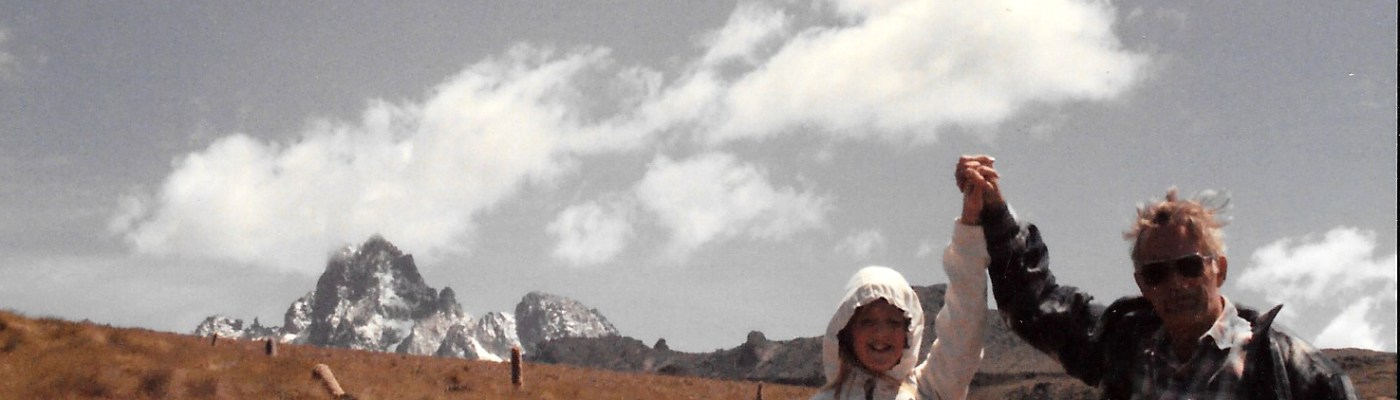 Visiting Mt. Kenya and Masai Mara Game Park. All the white people with us. I climbed farther than anyone. With dad. We reached 15,000 feet elevation. I was told that was amazing. I was told it was amazing I didn’t get altitude sickness. I was the amazing kid who climbed Mt. Kenya. And I saw herds of wildebeests migrating in the distance. And drank from snow streams. And argued with baboons over picnic scraps. And gazed at miles of jungle from the mattress laid in the back of a white pick-up truck. And learned the true terror of Africa are hippopotomusses (I wanted you to see my spelling effort with that one.) and bull elephants. When I see a sparse, grassy hill with small trees and rocks scattered here and there, it reminds me of Kenya. From the back of that white pickup.