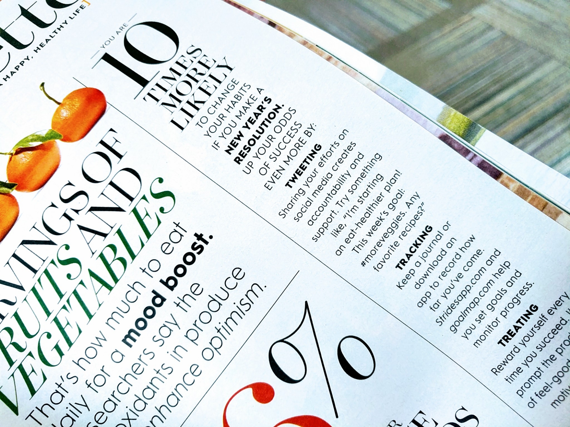 Better Homes & Gardens says tracking your goals makes them 10 times more likely to become habits. It also suggests treating yourself when you succeed. Great idea!