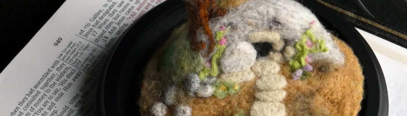 “After you and Peter left, I couldn’t stop crying. As I laid my head on the opening to the tomb, something caught my eye. There were two angels inside! One sat at the top of the ledge, the other at the foot.