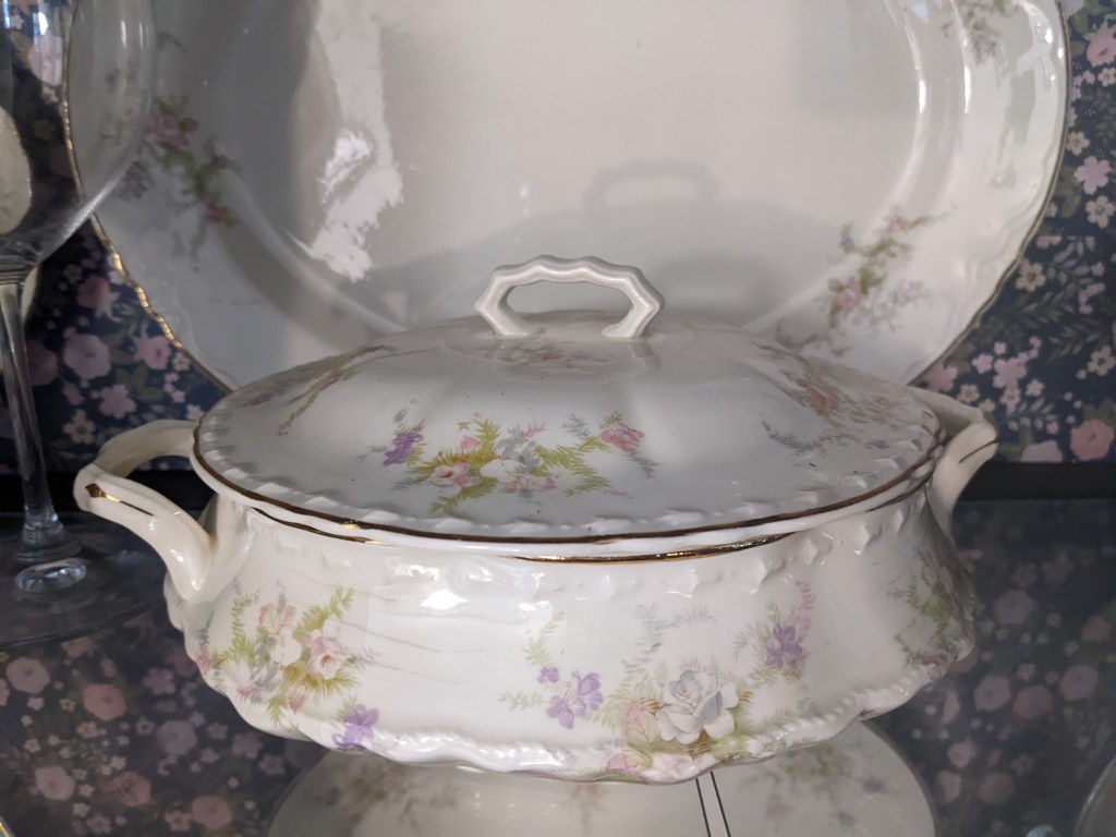 However, in the first box, my eye caught a glimmer of gold. Curious, I peeled back the newspaper stuffing and gasped. Before my eyes was a dinner plate of my grandmother’s china! It was her exact pattern that I had never seen anywhere else. I carefully pulled it out and prodded deeper into the box, pulling out dish after dish of dainty pink flowered bowls, cups, platters and lids. Whoever had owned this house had the same china pattern my grandmother had collected in the 1930’s. The content of the boxes doubled my grandma’s set. In the dark shadows of this abandoned and forgotten shed, I had found family treasure.